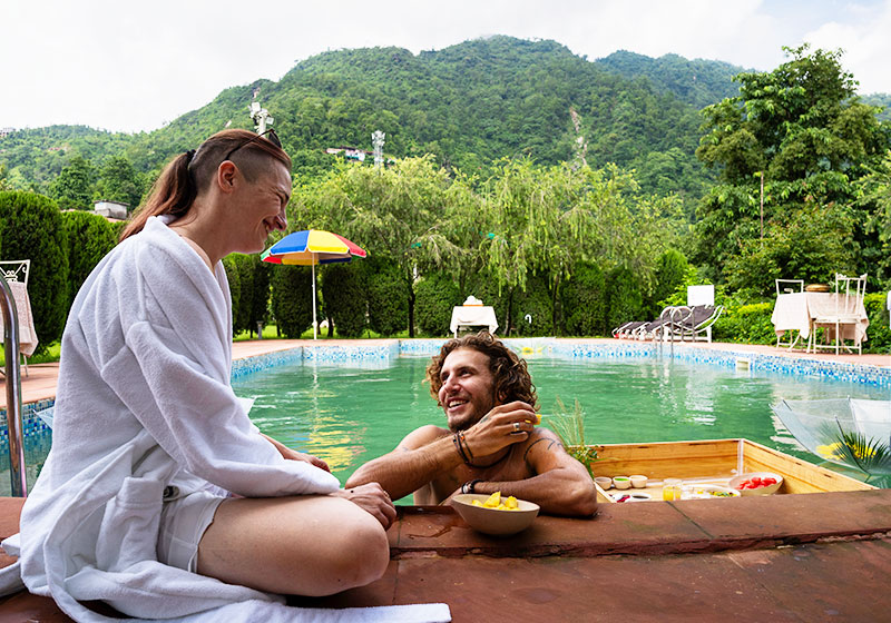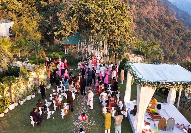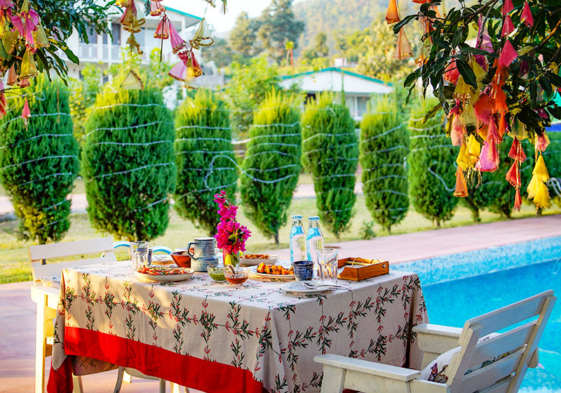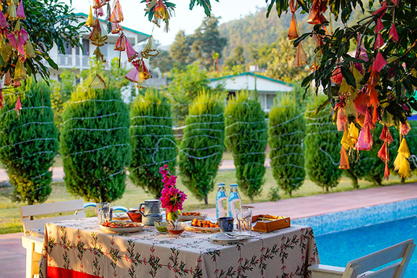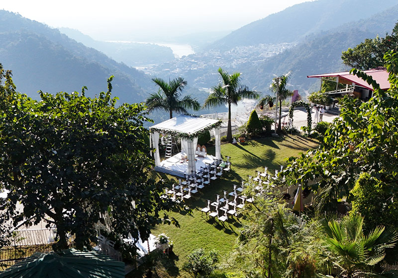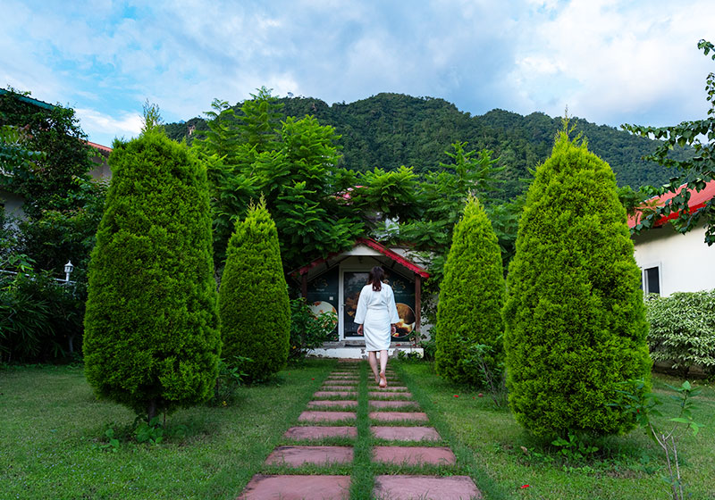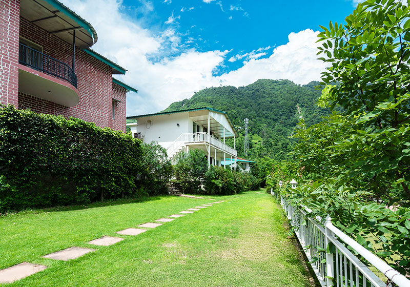 Neer Ganga Resorts, located in Rishikesh, is an oasis of relaxation and pleasure. Enveloped by the mighty Himalayas, Neer is a green paradise. It has an inventory of 19 cottages, a conference hall, a yoga hall, spa rooms, a swimming pool, a library, and sprawling lawns with wooden decks extending into the infinity that offer breathtaking views of Rishikesh and River Ganga.