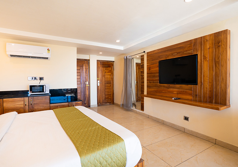 For added convenience, the suite features a small kitchen setup with a microwave and mini refrigerator, making it perfect for families, long stays, and travelers with children.